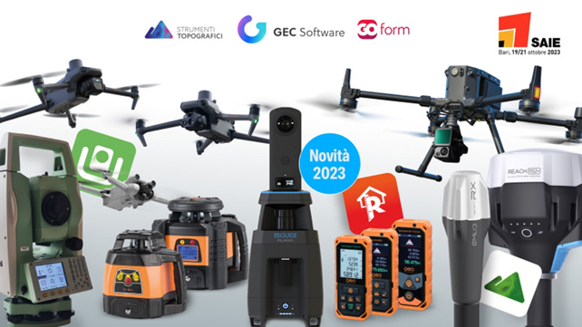 Dopo l’immenso successo ottenuto al SAIE 2022 di Bologna con la presentazione dei prodotti emergenti dedicati all’Edilizia, alla Topografia e alla Fotogrammetria, GEC Software, insieme ai suoi marchi Strumenti Topografici e Goform, è lieta di partecipare alla nuova edizione del SAIE, la Fiera delle Costruzioni, che si terrà a Bari, dal 19 al 21 ottobre 2023.