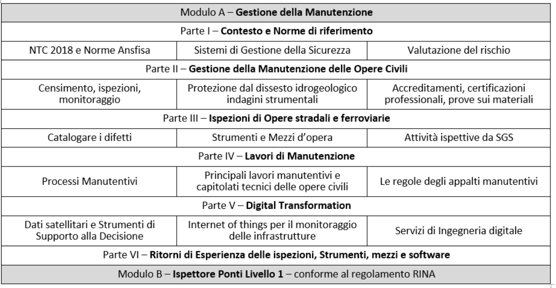 Il corso ha l’obiettivo di fornire conoscenze utili a divenire esperto in opere civili esistenti in ambito ferroviario e stradale, coniugando conoscenze di: