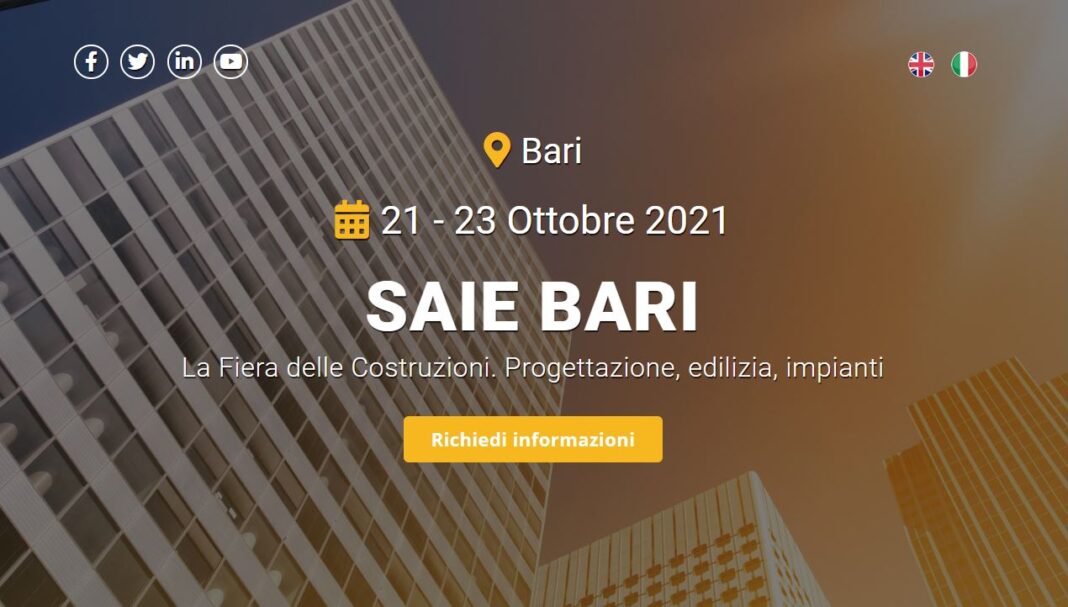 SAIE BARI 2021 pone al centro della manifestazione il sistema delle costruzioni, per confermare il proprio ruolo di vero punto d’incontro commerciale, formativo e informativo per tutti gli interloc